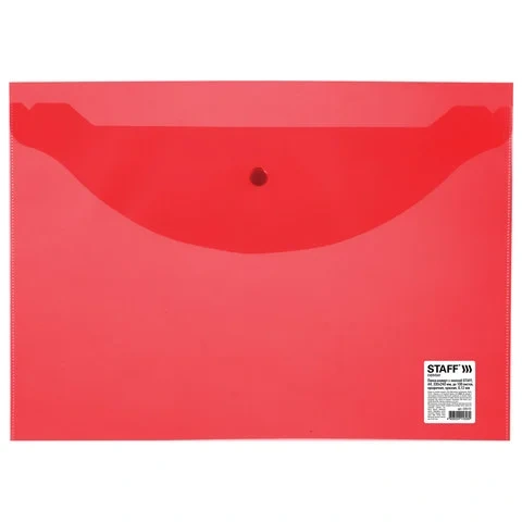 Пластиковая папка на кнопке Staff красная, А4, до 100 листов