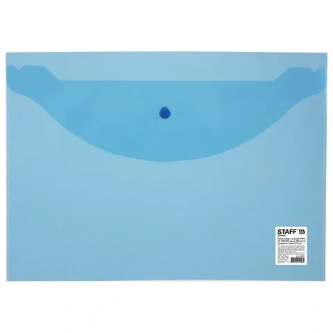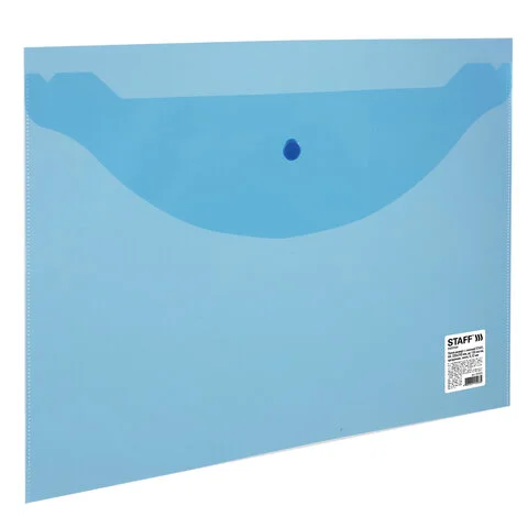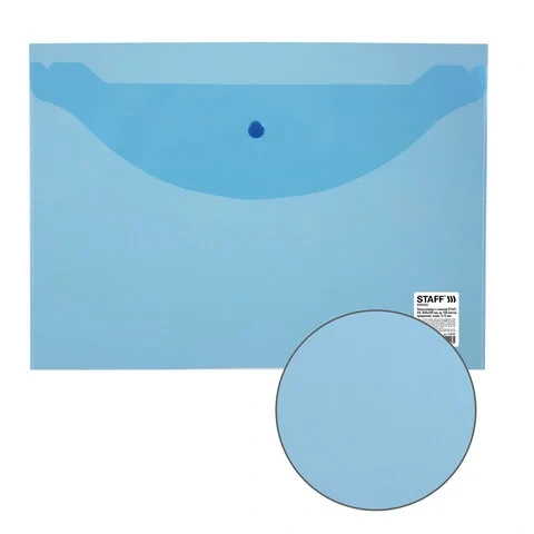 Пластиковая папка на кнопке Staff синяя прозрачная, А4, до 100 листов