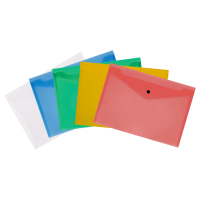 Папка-конверт на кнопке СТАММ А4, 150мкм, пластик, прозрачная, ассорти