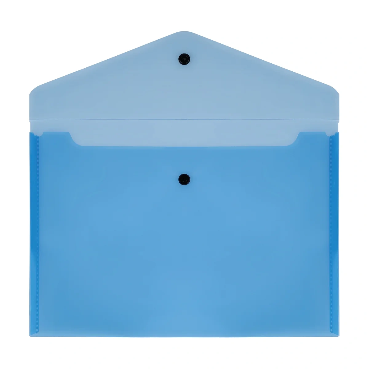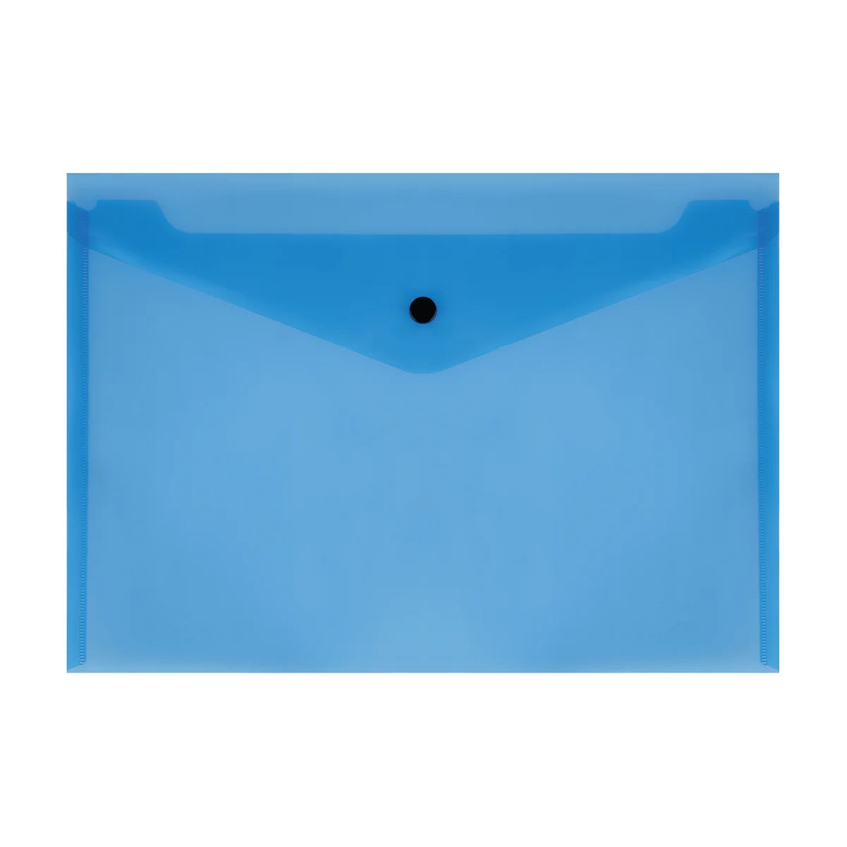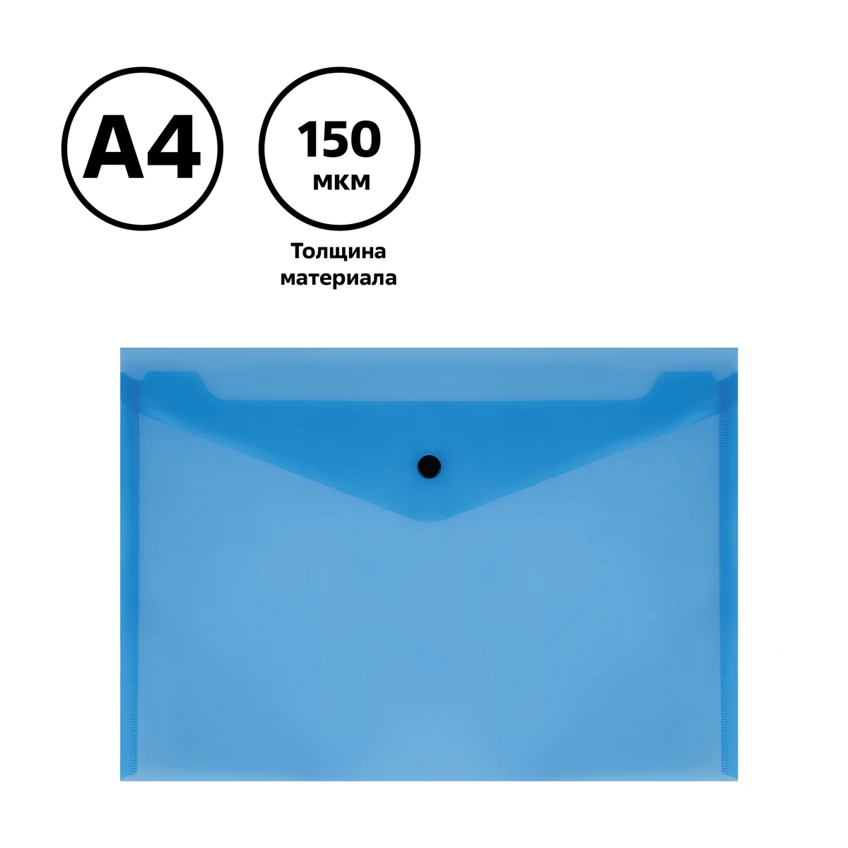 Папка-конверт на кнопке СТАММ А4, 150мкм, пластик, прозрачная, синяя