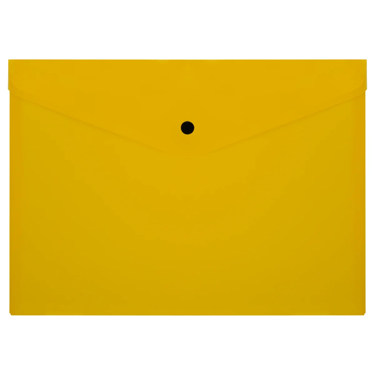 Папка-конверт на кнопке СТАММ А4, 150мкм, пластик, прозрачная, желтая
