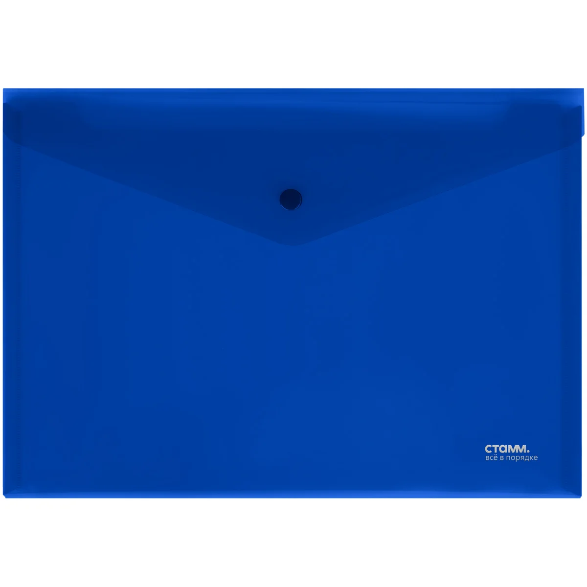 Папка-конверт на кнопке СТАММ А4, 180мкм, пластик, непрозрачная, синяя