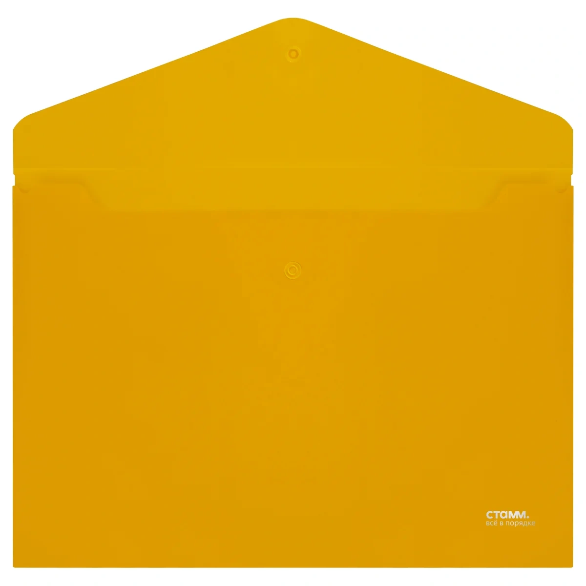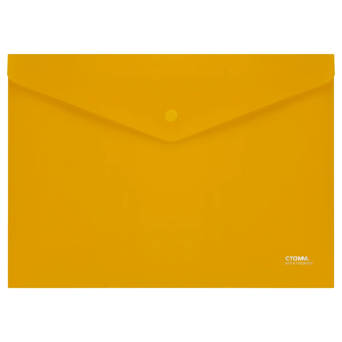 Папка-конверт на кнопке СТАММ А4, 180мкм, пластик, непрозрачная, желтая
