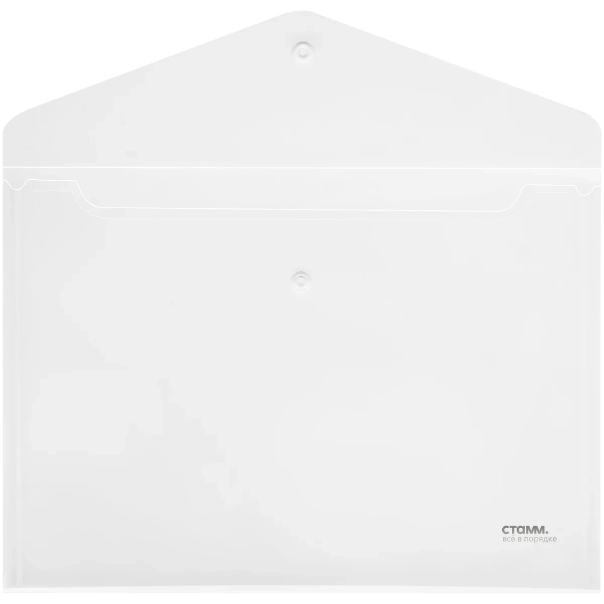 Папка-конверт на кнопке СТАММ А4, 180мкм, пластик, прозрачная