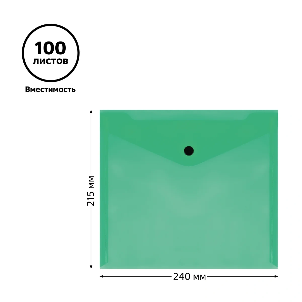 Папка-конверт на кнопке «СТАММ» формата А5+ изготовлена из качественного полипропилена толщиной 150 мкм. Размер изделия составляет 240*215 мм, ориентация – горизонтальная. Предназначена для хранения и транспортировки бумаг. Папка плотно закрывается клапаном с кнопкой и надёжно защищает документы от влаги и пыли. Имеет глянцевую текстуру. Вместимость – до 100 листов. Цвет изделия – зелёный.