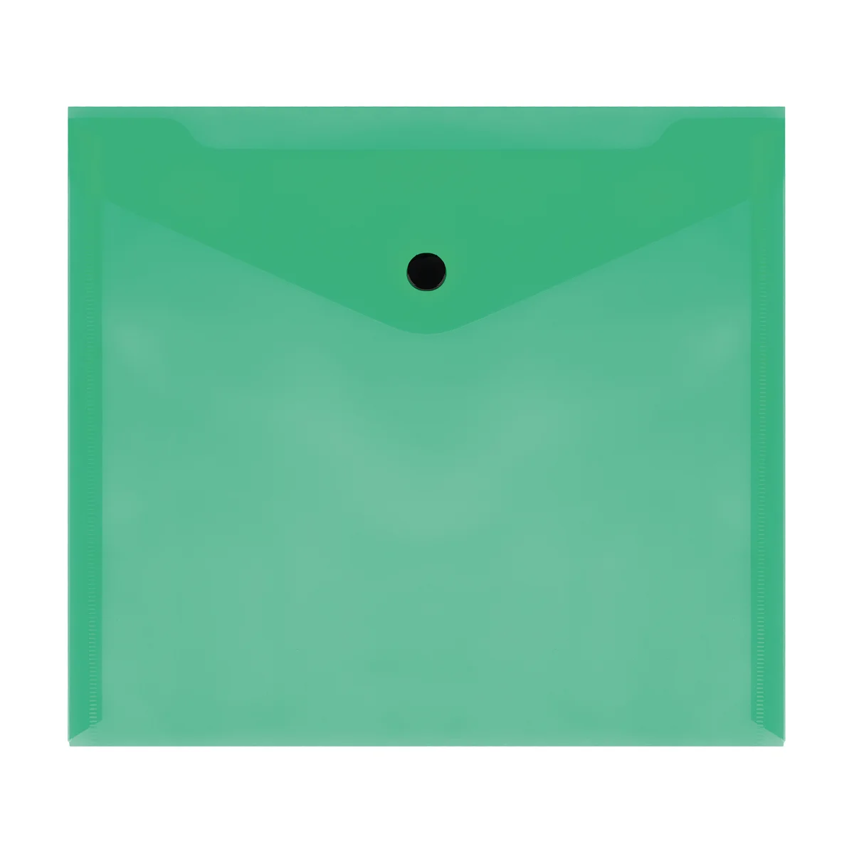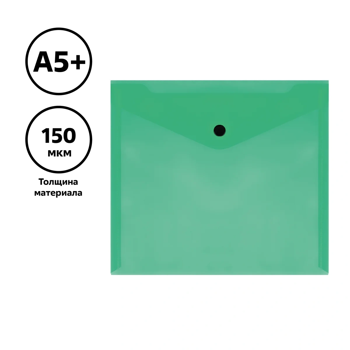 Папка-конверт на кнопке СТАММ А5+, 150мкм, пластик, прозрачная, зеленая