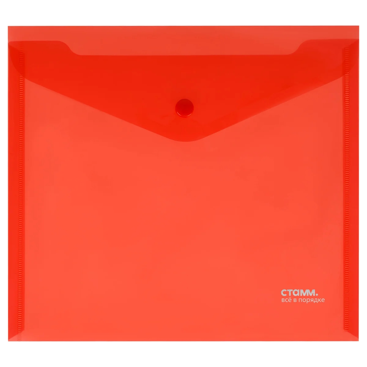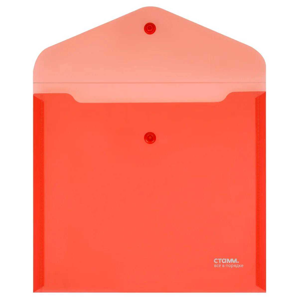 Папка-конверт на кнопке СТАММ А5+, 180мкм, пластик, прозрачная, красная