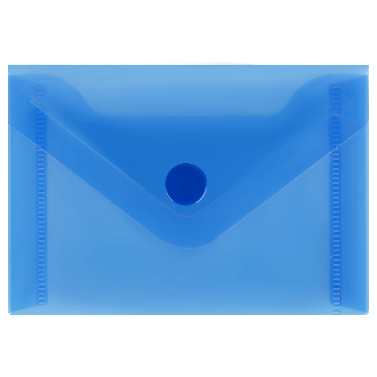 Папка-конверт на кнопке «СТАММ» формата А7 изготовлена из пластика толщиной 150 мкм. Размер — 74*105 мм. Предназначена для хранения и транспортировки документов и различных мелких предметов. Папка синего цвета изготовлена из пластика, плотно закрывается клапаном с кнопкой. Защищает документы от влаги и пыли. В ассортименте яркие насыщенные цвета.