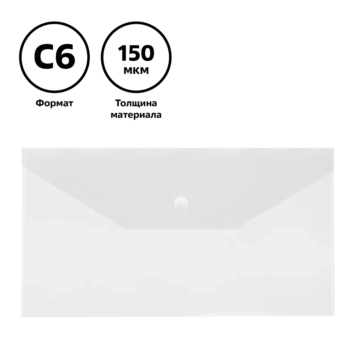Папка-конверт на кнопке СТАММ С6, 150мкм, пластик, прозрачная, бесцветная