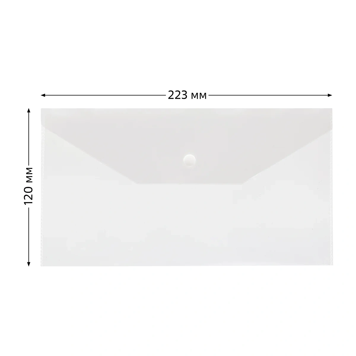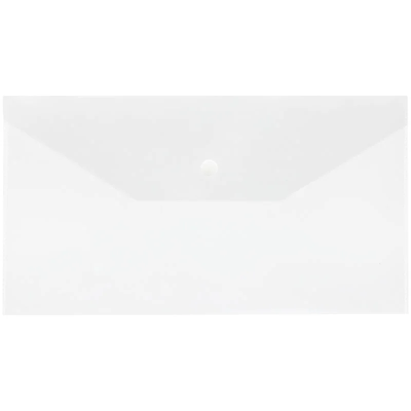 Папка–конверт на кнопке «СТАММ» формата С6+ изготовлена из качественного полипропилена толщиной 150 мкм. Размер изделия составляет 223*120 мм, ориентация – горизонтальная. Предназначена для хранения и транспортировки бумаг. Папка плотно закрывается клапаном с кнопкой и надёжно защищает документы от влаги и пыли. Имеет глянцевую текстуру. Вместимость – до 100 листов. Цвет изделия – прозрачный.
