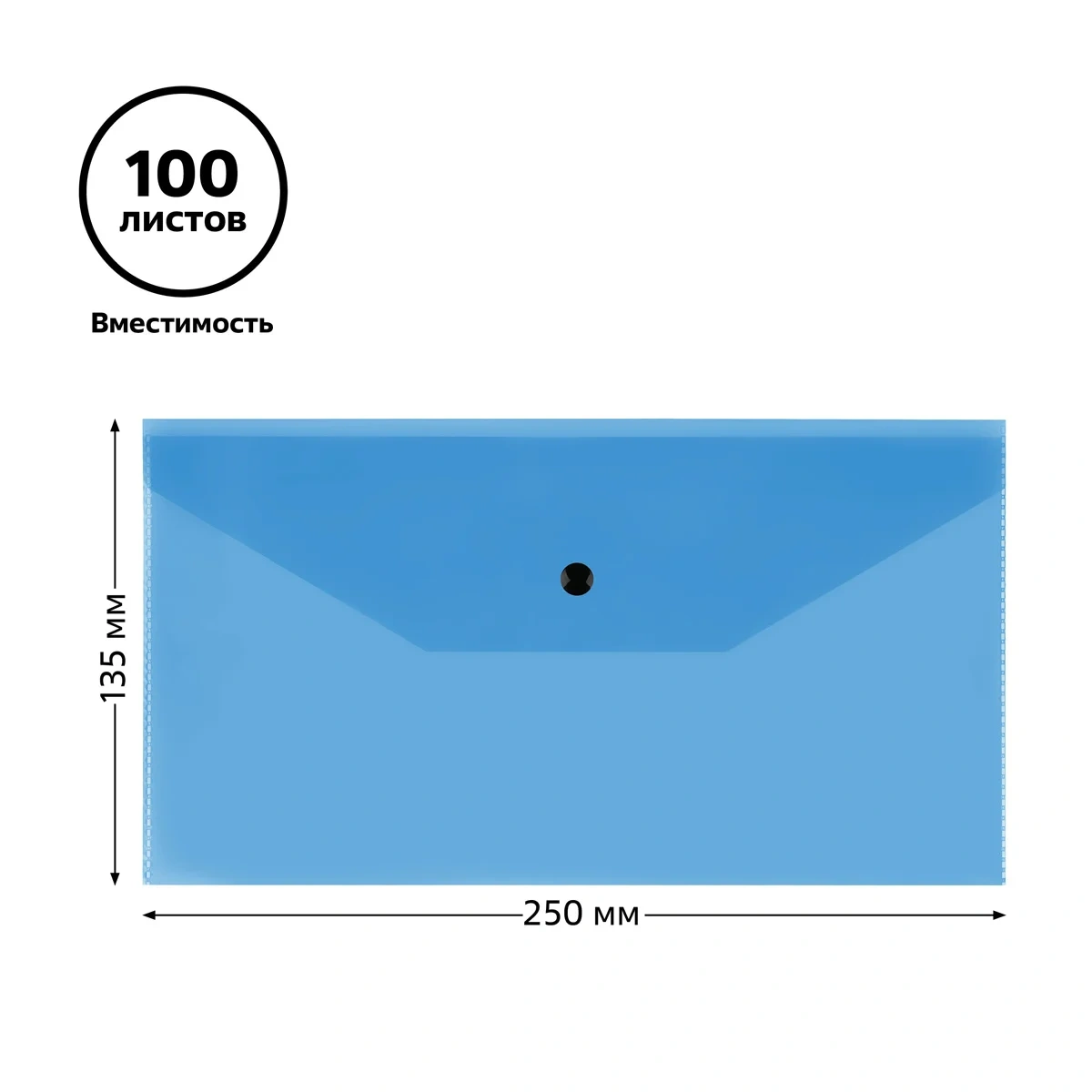 Папка-конверт на кнопке СТАММ С6, 150мкм, пластик, прозрачная, синяя