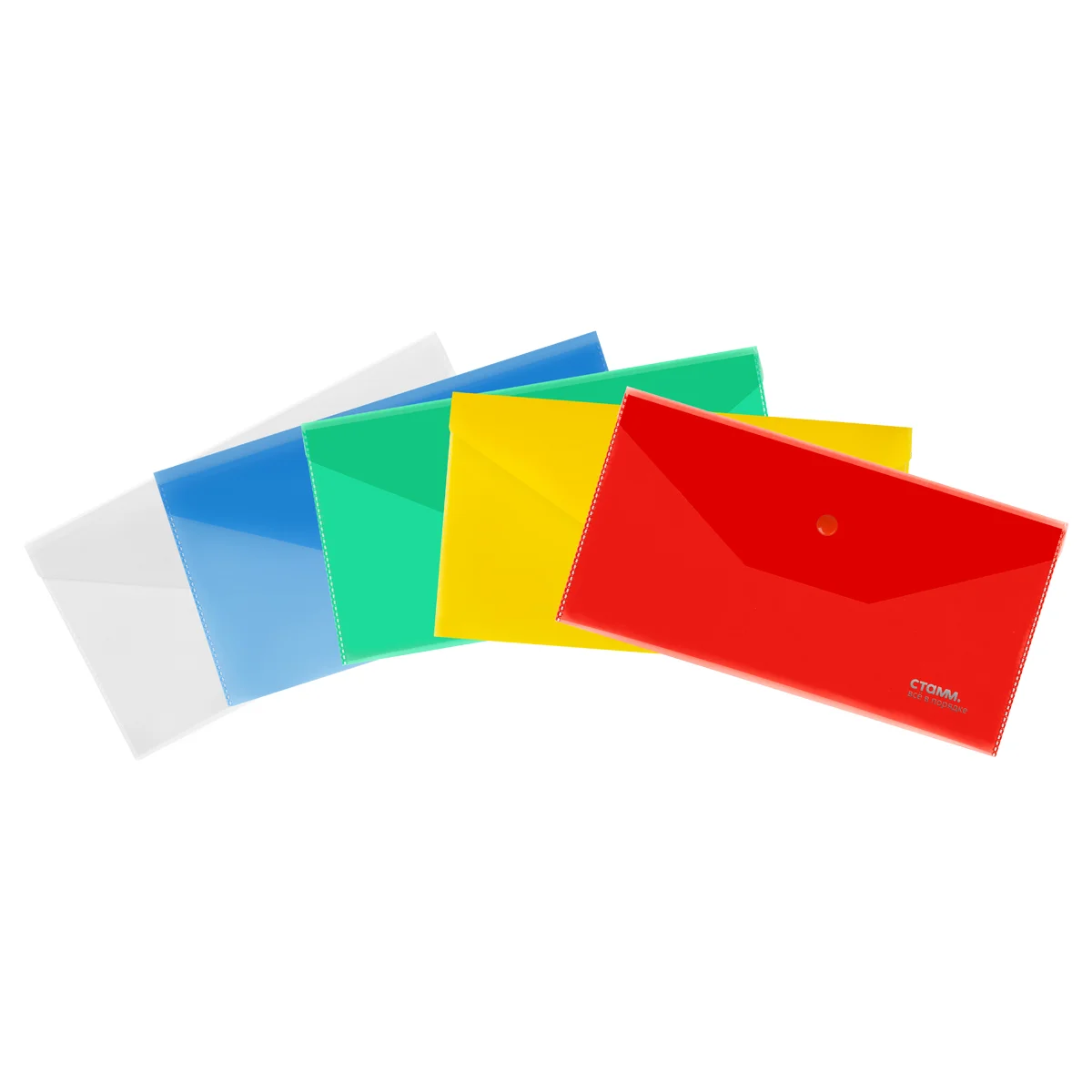 Папка-конверт на кнопке СТАММ С6, 180мкм, пластик, прозрачная, ассорти