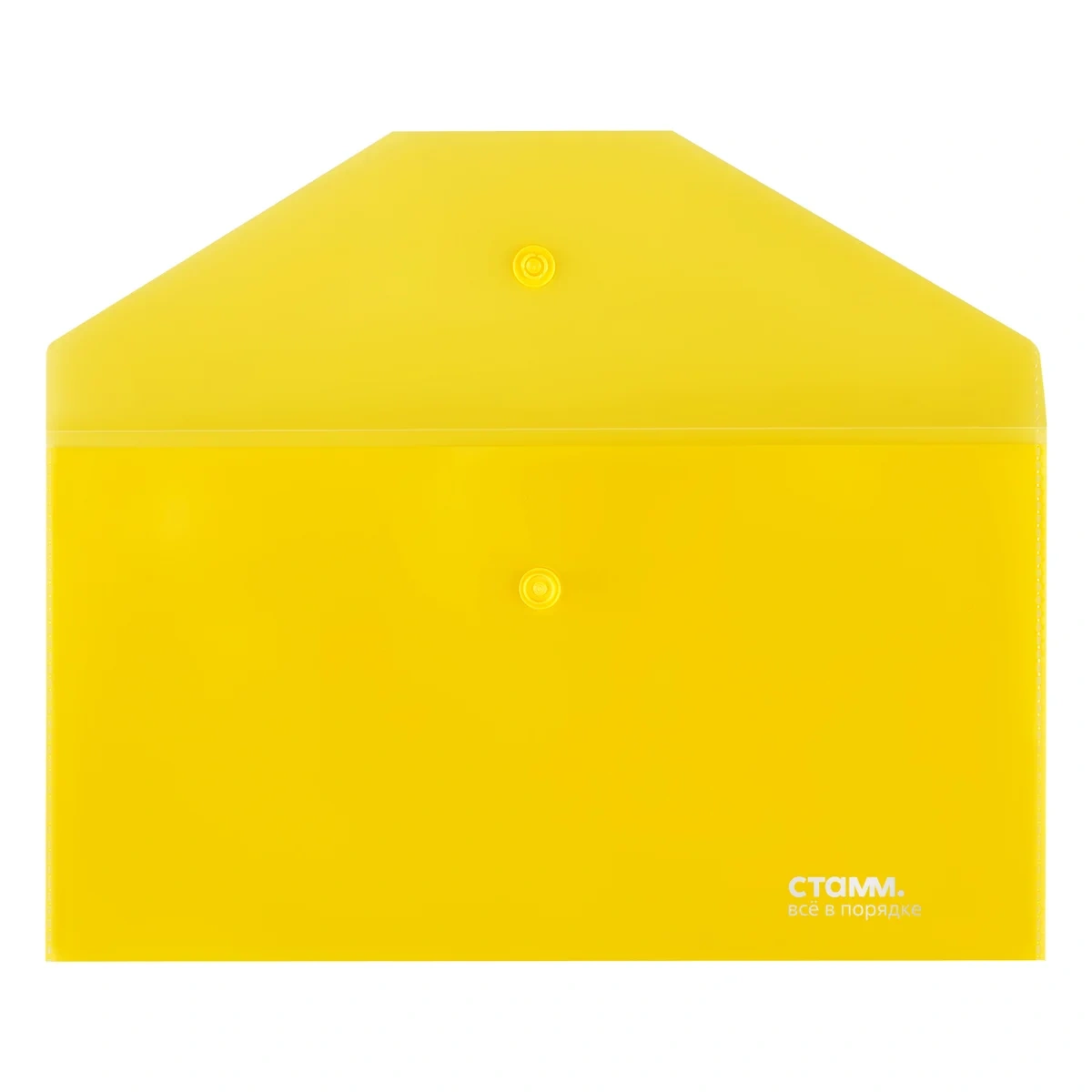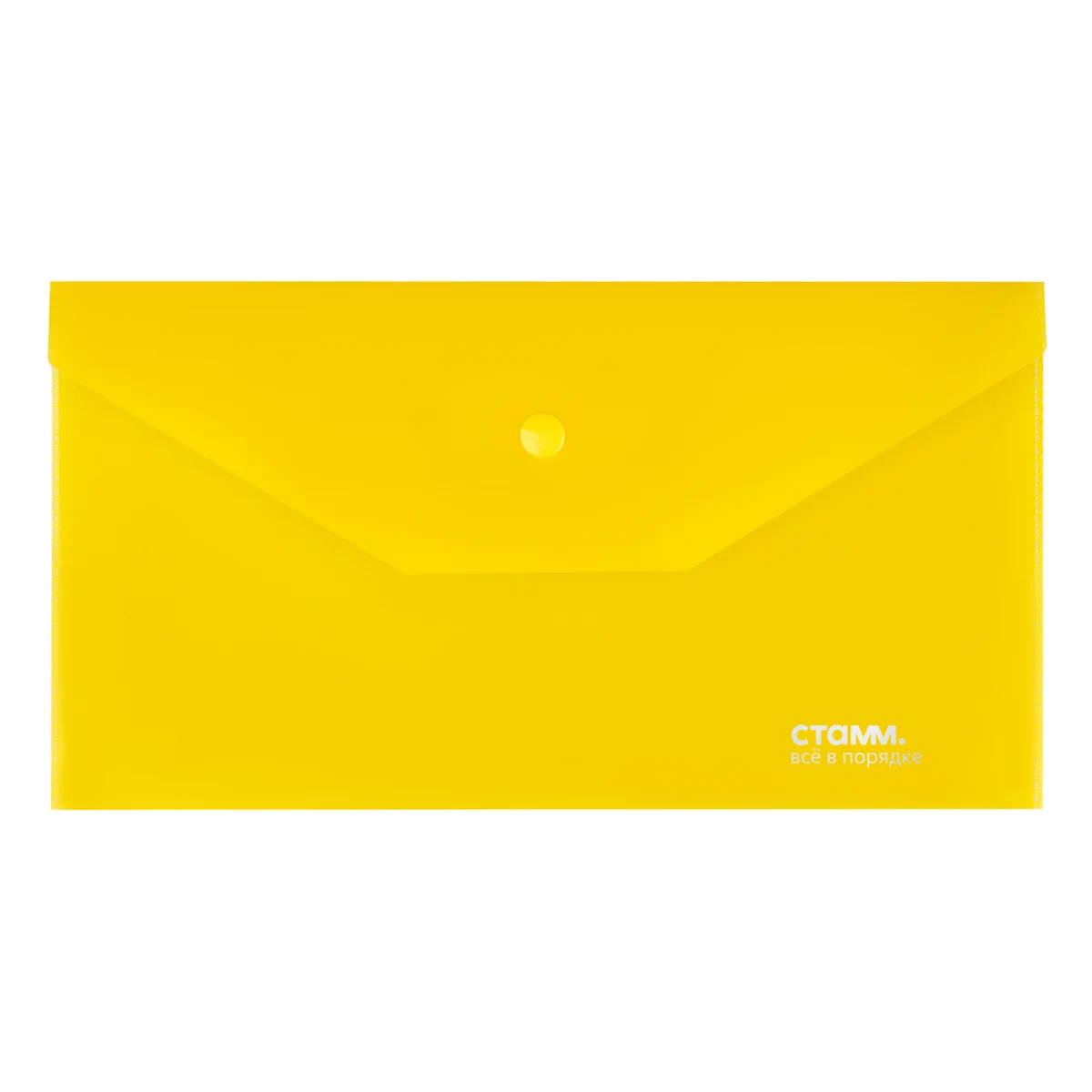 Папка-конверт на кнопке СТАММ С6, 180мкм, пластик, прозрачная, желтая