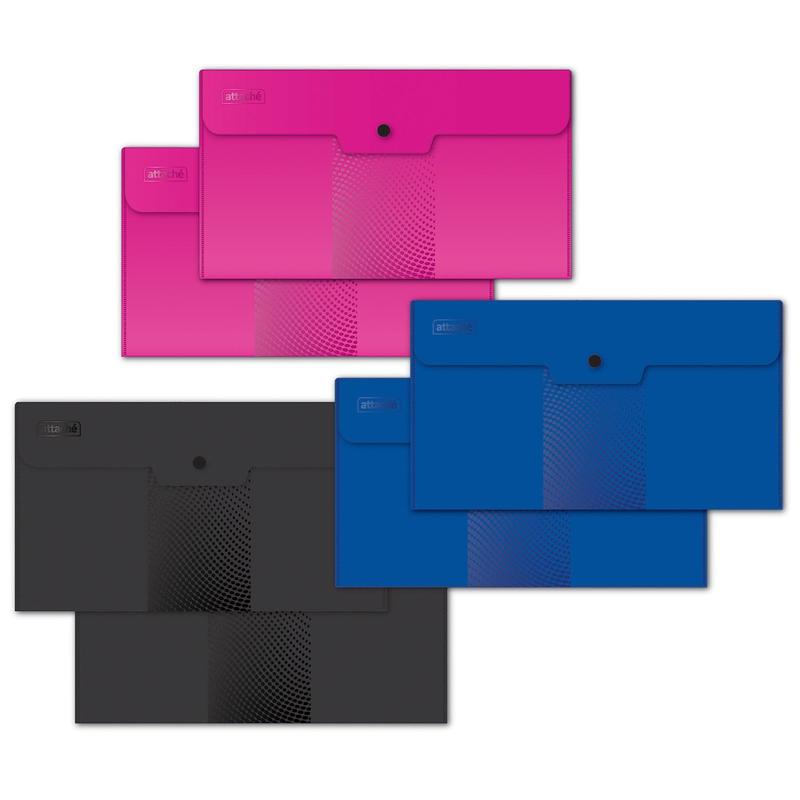 Папка-конверт на кнопке Attache Digital. Формат: евро. Папка вмещает до 80 листов. Сделана из экологичного полипропилена для хранения документов (3 оттенка в ассортименте).