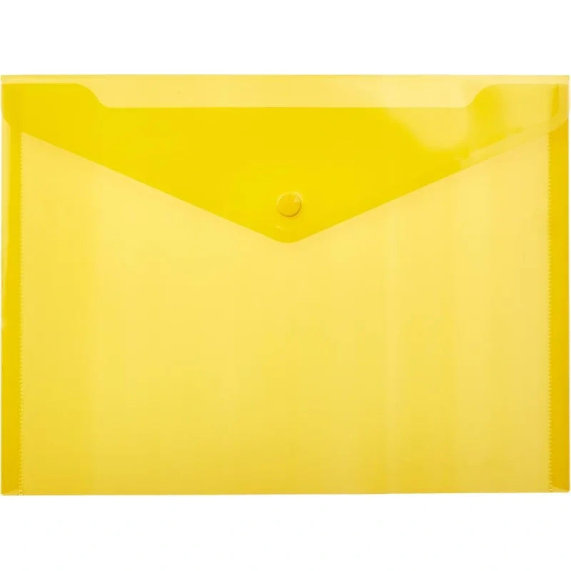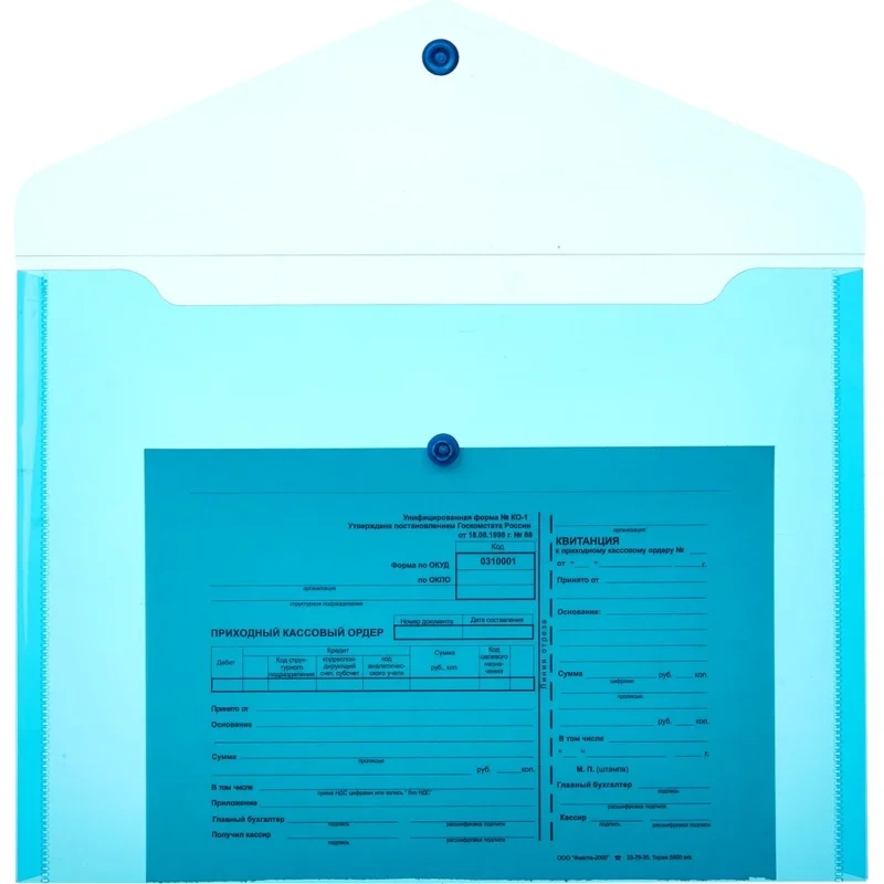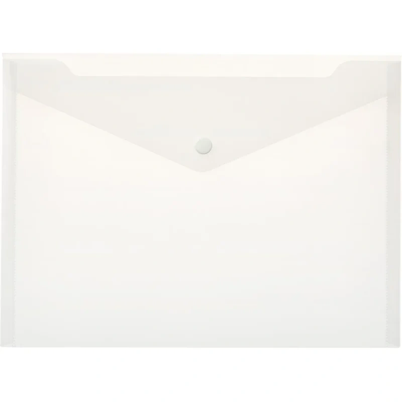 Папка-конверт размером формата В5 изготовлена из прозрачного пластика толщиной 0,18 мм. Закрывается на кнопку. Вмещает до 120 листов. Удобна для хранения и переноски документов, предотвращает их смятие и загрязнение. Размер: 209?282 мм.