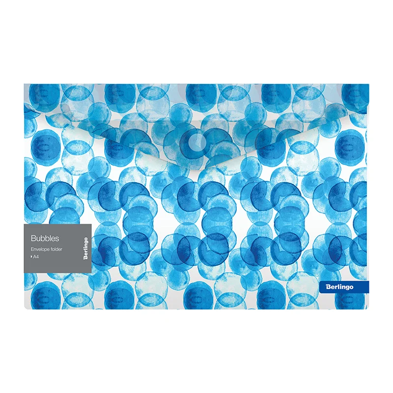 Папка-конверт на липучке Berlingo 'Bubbles', 180мкм, прозрачная, с рисунком