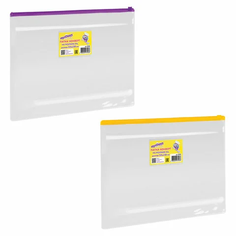 Папка-конверт на молнии А4 (335х238 мм), ассорти, 0,12 мм, ЮНЛАНДИЯ, 229550