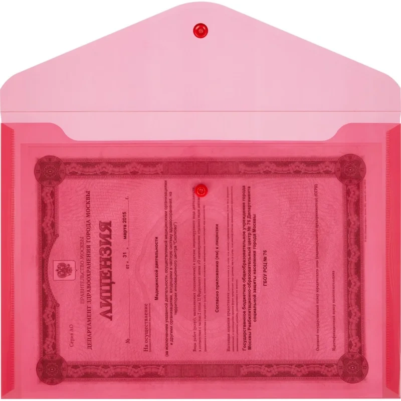 Закрывается на пластиковую молнию черного цвета. Удобна для хранения и переноски документов, предотвращает их смятие и загрязнение. Вмещает до 80 листов стандартной плотности.