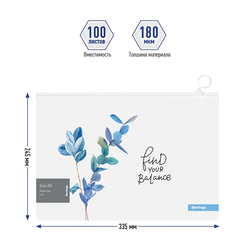 Папка-конверт на молнии Berlingo 'Eco XS' A4, 180мкм, с рисунком