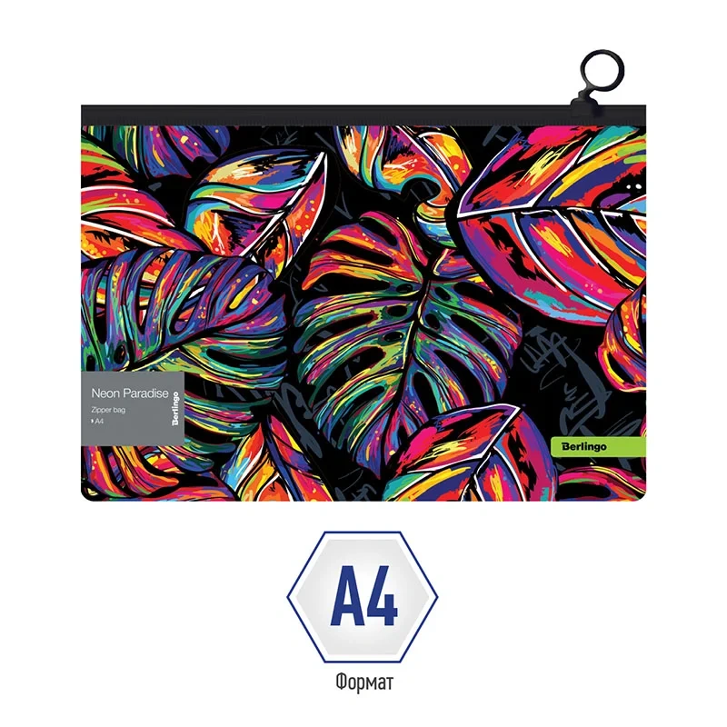 Папка-конверт на молнии Berlingo 'Neon Paradise' A4, 180мкм, с рисунком