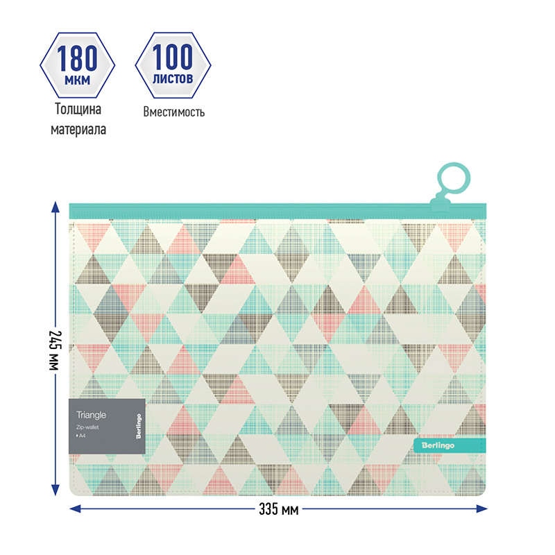 Папка-конверт на молнии Berlingo 'Triangle', 180мкм, с рисунком