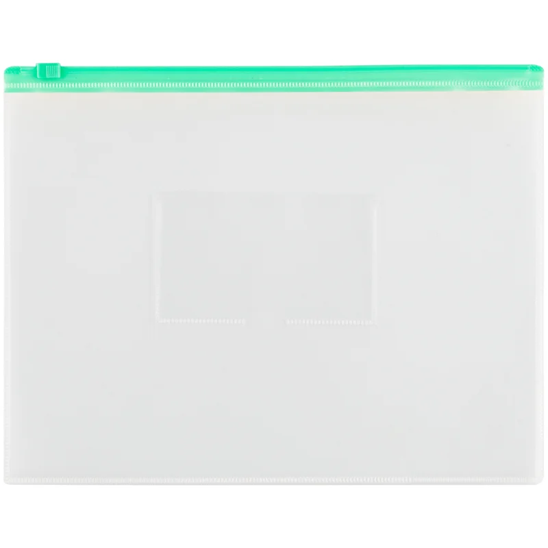Папка-конверт на молнии OfficeSpace A5, прозрачная, 150мкм, молния зеленая