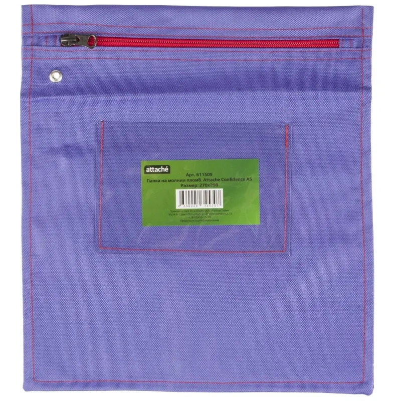 Папка-конверт на молнии пломб. Attache Confidence А5 + фиолет. Россия
