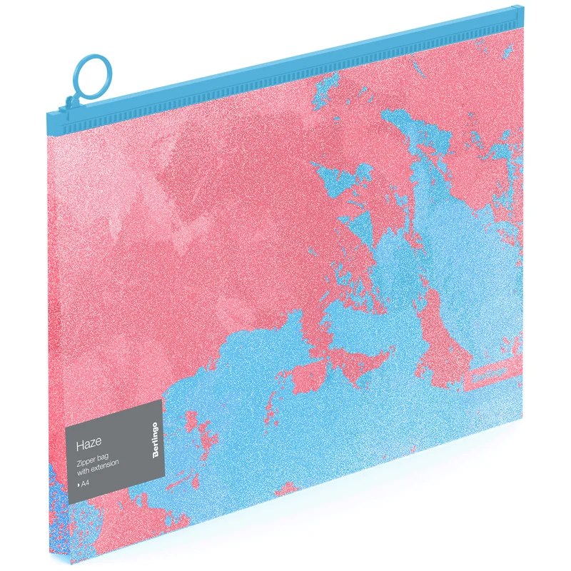 Папка-конверт на молнии с расширением Berlingo 'Haze' А4, 180мкм, розовая/голубая, эфф.блесток