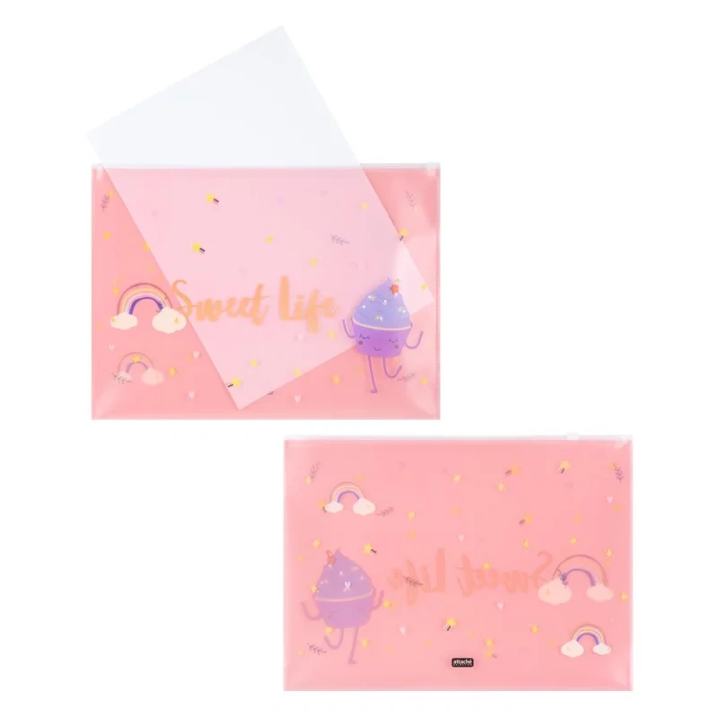 Папка-конверт на молнии Z-L Attache Selection Sweet life А4 200мкм 5шт/уп