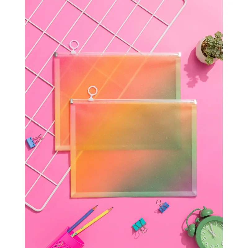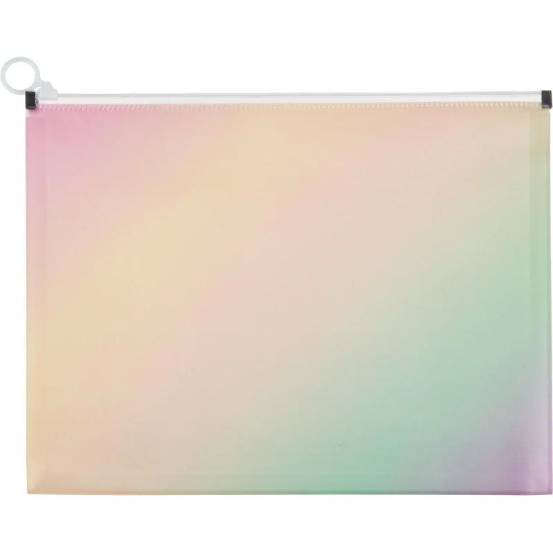Папка-конверт на молнии zip А4 Attache Selection Rainbow, РР,180мкм Папка-конверт на молнии Attache Selection Rainbow формата А4 изготовлена из мягкого прозрачного полипропилена толщиной 0.2 мм. Закрывается на пластиковую молнию белого цвета. На лицевой стороне - карман для визитки или этикетки. Удобна для хранения и переноски документов, предотвращает их смятие и загрязнение. Вместимость 100 листов стандартной плотности. Размер: 245x320x30 мм.