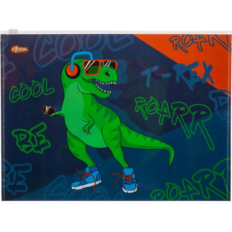 Папка-конверт на молнии zip B5 1 School Динозавр