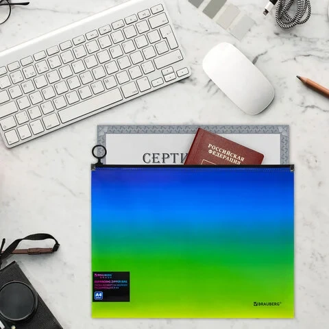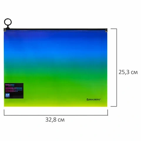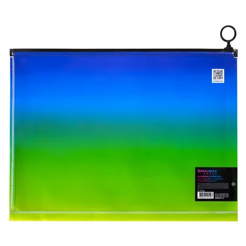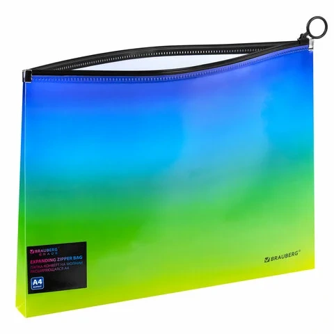 Папка-конверт расширяющаяся на молнии BRAUBERG 'Grade', А4, до 300 листов, зелено-голубой градиент,