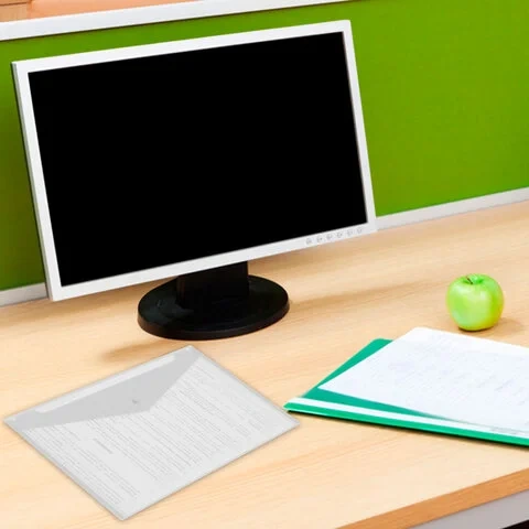 Папка-конверт с гладкой фактурой формата А4 изготовлена из плотного пластика толщиной 150 мкм. Закрывается на защелку-кнопку, что делает удобным частое использование и обеспечивает быстрый доступ к ее содержимому. Папка способна вместить до 100 листов стандартной плотности.