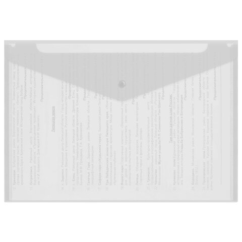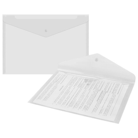 Папка-конверт с кнопкой А4, BRAUBERG 'UNIVERSAL', до 100 листов, прозрачная, 0,15 мм, 273070