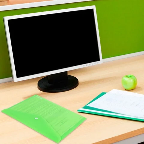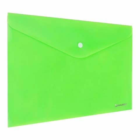 Папка-конверт с гладкой фактурой формата А4 изготовлена из плотного непрозрачного пластика. Цвета – ассорти неон, толщина – 180 мкм. Закрывается на защелку-кнопку, что делает удобным частое использование и обеспечивает быстрый доступ к содержимому. Папка способна вместить до 100 листов стандартной плотности.