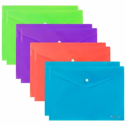 Папка-конверт с кнопкой А4, КОМПЛЕКТ 8 шт., яркие неоновые цвета ассорти, BRAUBERG 'NEON', 272871