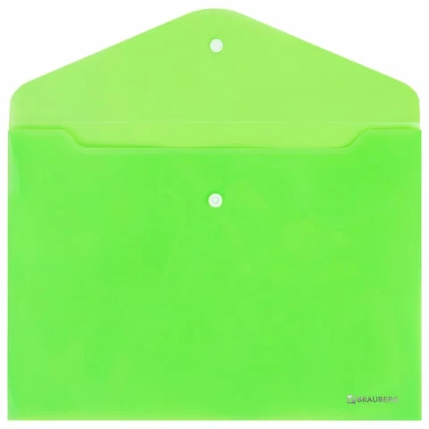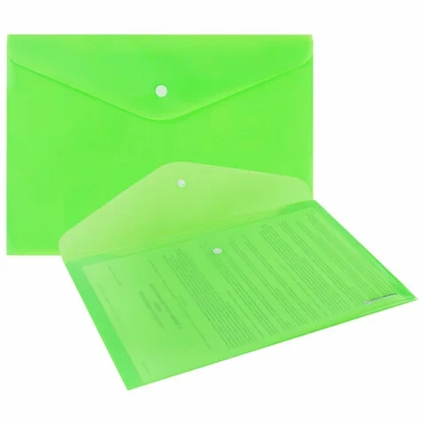 Папка-конверт с гладкой фактурой формата А4 изготовлена из плотного непрозрачного пластика. Цвета – ассорти неон, толщина – 180 мкм. Закрывается на защелку-кнопку, что делает удобным частое использование и обеспечивает быстрый доступ к содержимому. Папка способна вместить до 100 листов стандартной плотности.