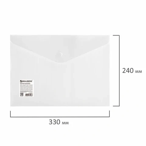 Папка-конверт с кнопкой BRAUBERG А4 до 100 л. матовая прозрачная СВЕРХПРОЧНАЯ 0,18 мм, 270471, 180мк