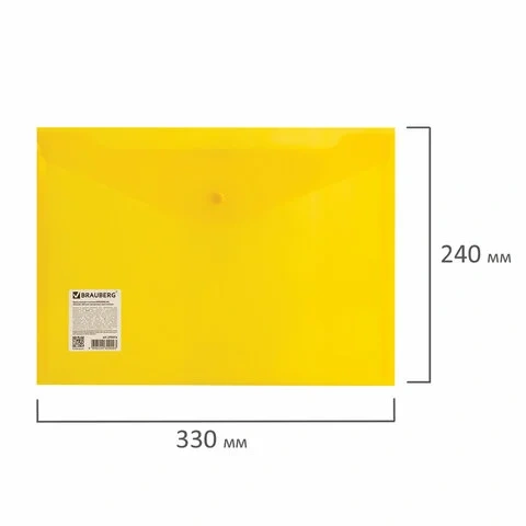 Папка-конверт с кнопкой BRAUBERG А4 до 100 л. прозрачная желтая СВЕРХПРОЧНАЯ 0,18 мм, 270472, 180мкм