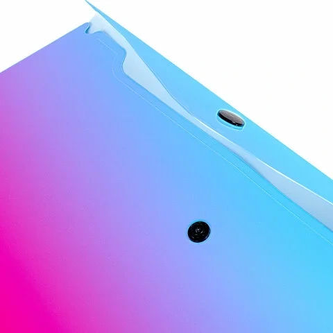 Папка сделана из плотного пластика (180 мкм) с УФ-печатью. Закрывается на защелку-кнопку, что увеличивает сохранность документов. Вместительность до 100 листов, гладкая фактура с градиентом.