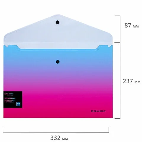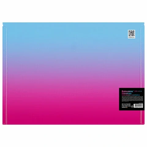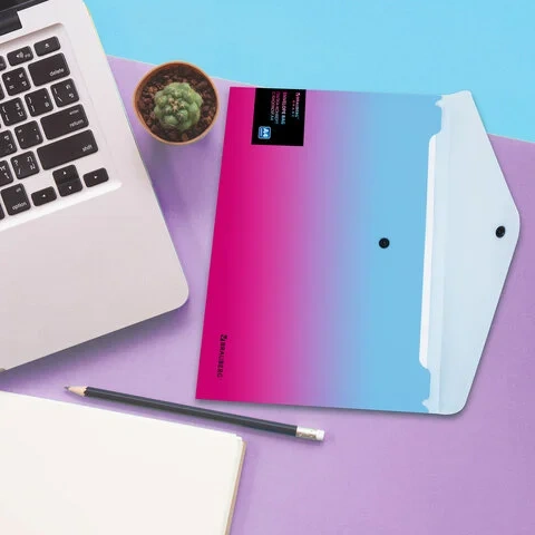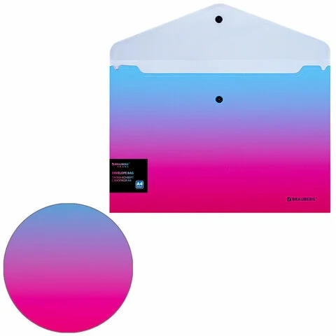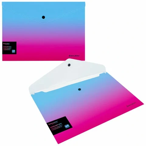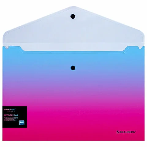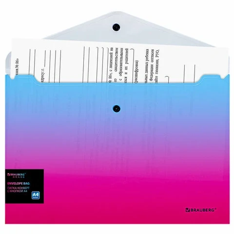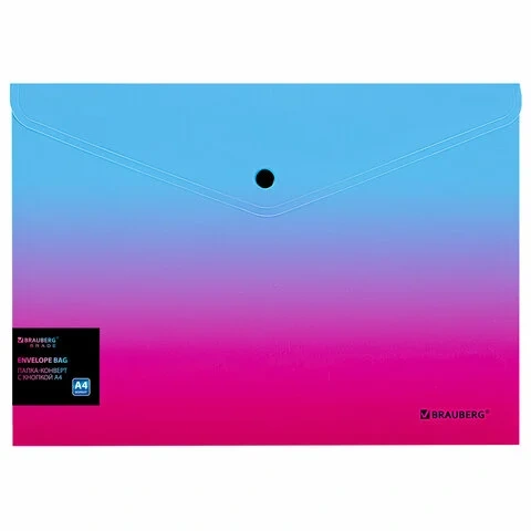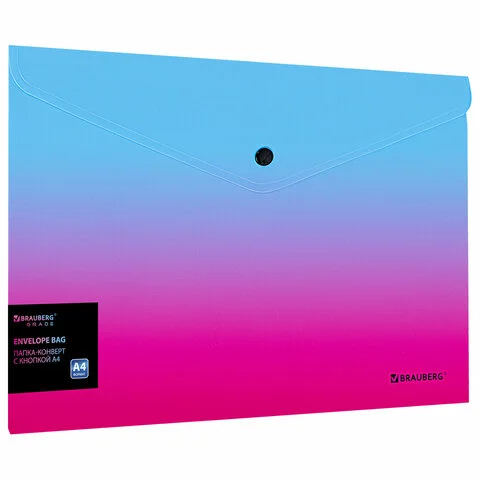 Папка-конверт с кнопкой BRAUBERG 'Grade', А4, до 100 листов, розово-голубой градиент, 0,18 мм, 27196