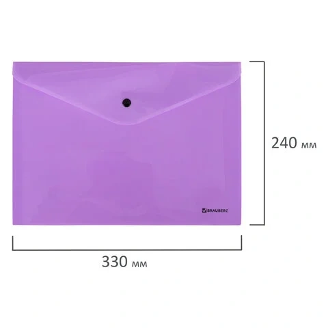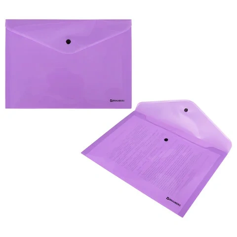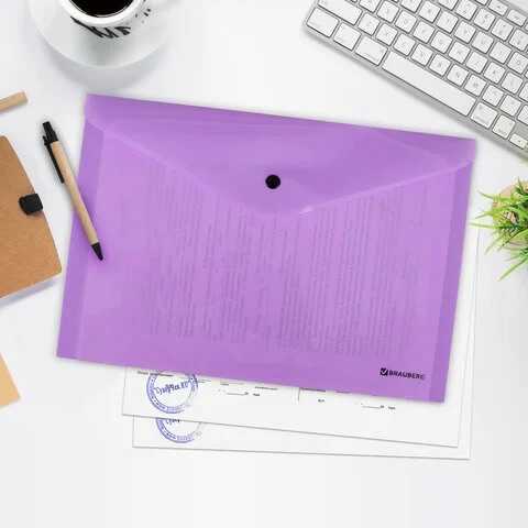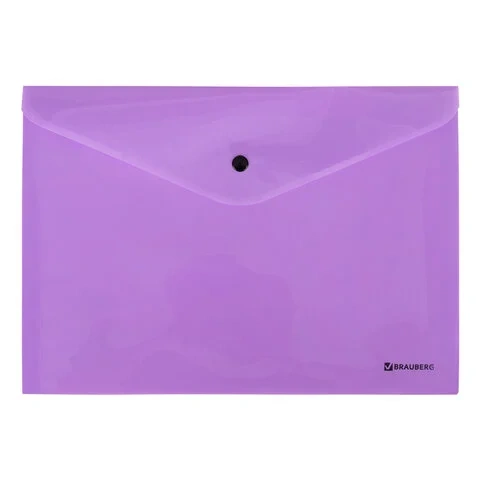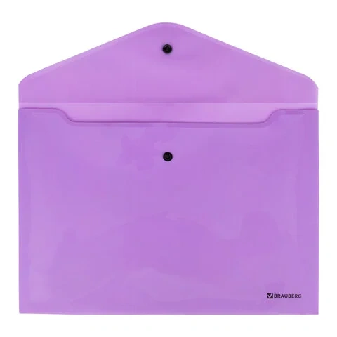 Папка-конверт с кнопкой BRAUBERG 'Pastel', А4, до 100 листов, непрозрачная, лиловая, 0,18 мм, 270475