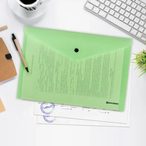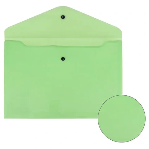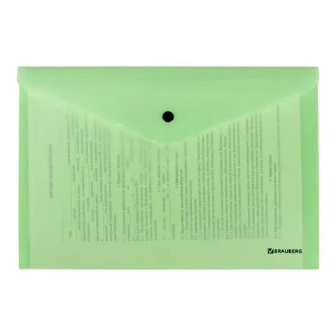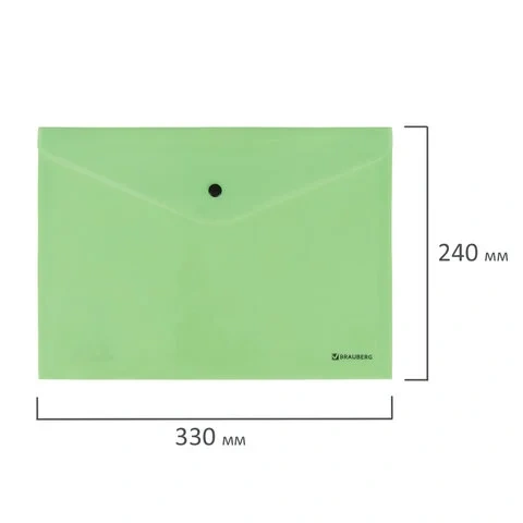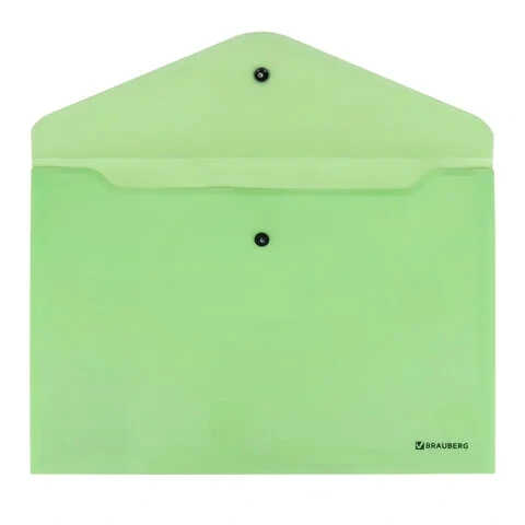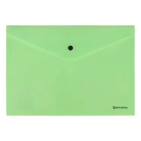 Папка-конверт с кнопкой BRAUBERG 'Pastel', А4, до 100 листов, непрозрачная, мятная, 0,18 мм, 270477