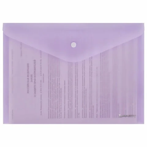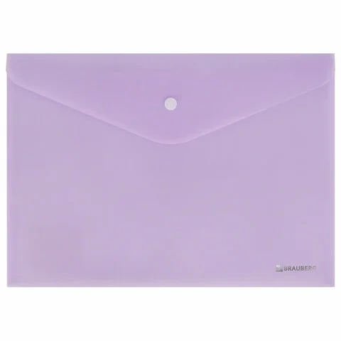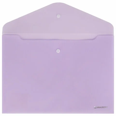 Папка-конверт с кнопкой BRAUBERG Pastel, А4, матовая непрозрачная лиловая, ПРОЧНАЯ, 0,2 мм, 272881