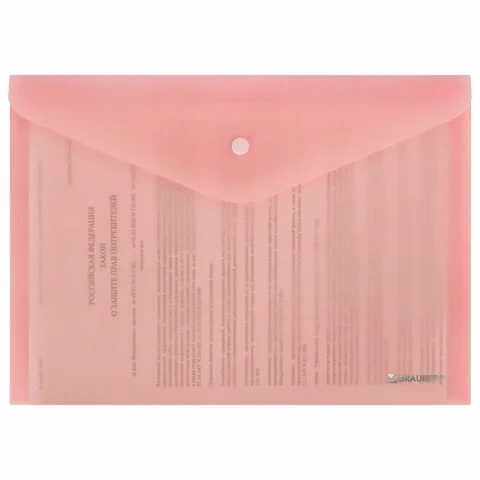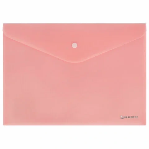 Папка-конверт с кнопкой BRAUBERG 'Pastel', А4, матовая непрозрачная, персиковая, ПРОЧНАЯ 0,2 мм, 272