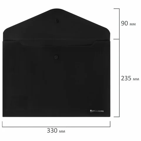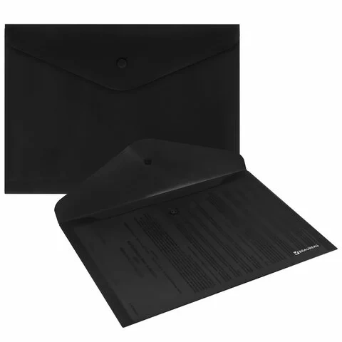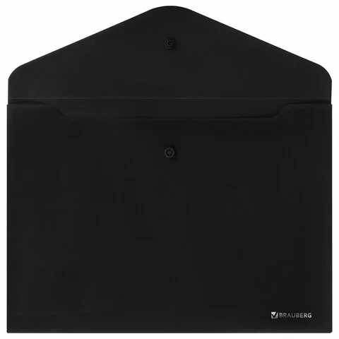 Папка-конверт с кнопкой BRAUBERG 'SUPER', А4, матовая непрозрачная, черная, ПРОЧНАЯ 0,2 мм, 272879