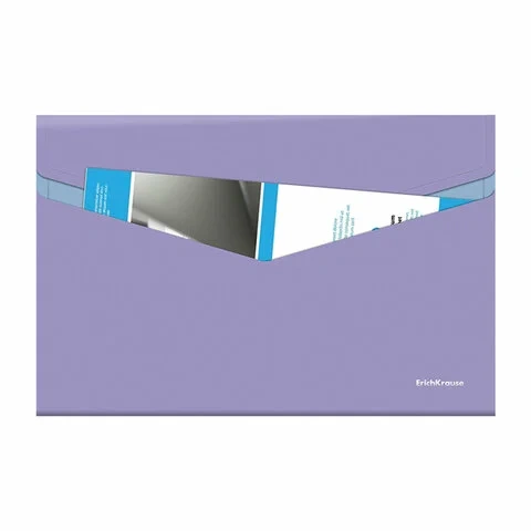 Предназначена для хранения и транспортировки небольшого количества документов. Цвет папки – ассорти: бежевый, голубой, розовый, фиолетовый. Надежная застежка-кнопка обеспечивает быстрый доступ к документам. Папка вмещает до 120 бумажных листов. Размер – 232х333мм, толщина – 0,18 мм.