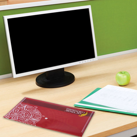 Папка-конверт с полноцветным рисунком и гладкой фактурой формата А4 изготовлена из плотного пластика толщиной 160 мкм. Закрывается на защелку-кнопку, что делает удобным частое использование и обеспечивает быстрый доступ к ее содержимому. Папка способна вместить до 100 листов стандартной плотности.