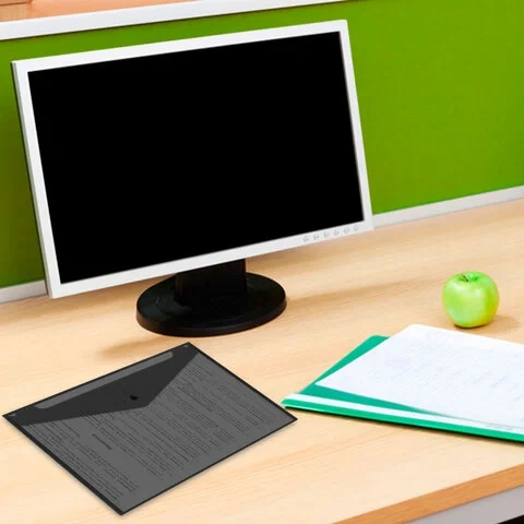 Папка-конверт с гладкой фактурой формата А4 изготовлена из плотного пластика толщиной 150 мкм. Закрывается на защелку-кнопку, что делает удобным частое использование и обеспечивает быстрый доступ к ее содержимому. Папка способна вместить до 100 листов стандартной плотности.