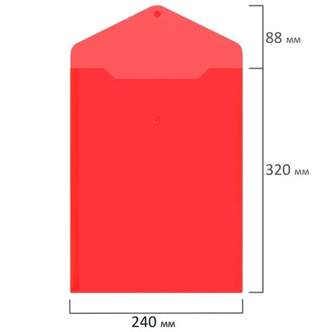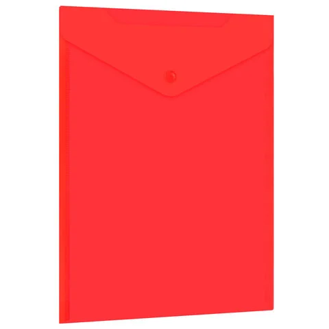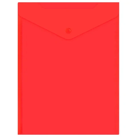 Папка-конверт с кнопкой прозрачная А4 BRAUBERG UNIVERSAL, вертикальная, красная, 0,15 мм, 273077